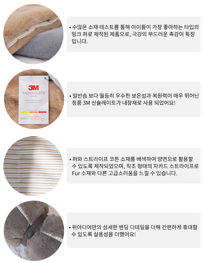 3M 신슐레이트를 내장재로 사용해 우수한 보온성과 풍성한 볼륨감이 오래 유지되며