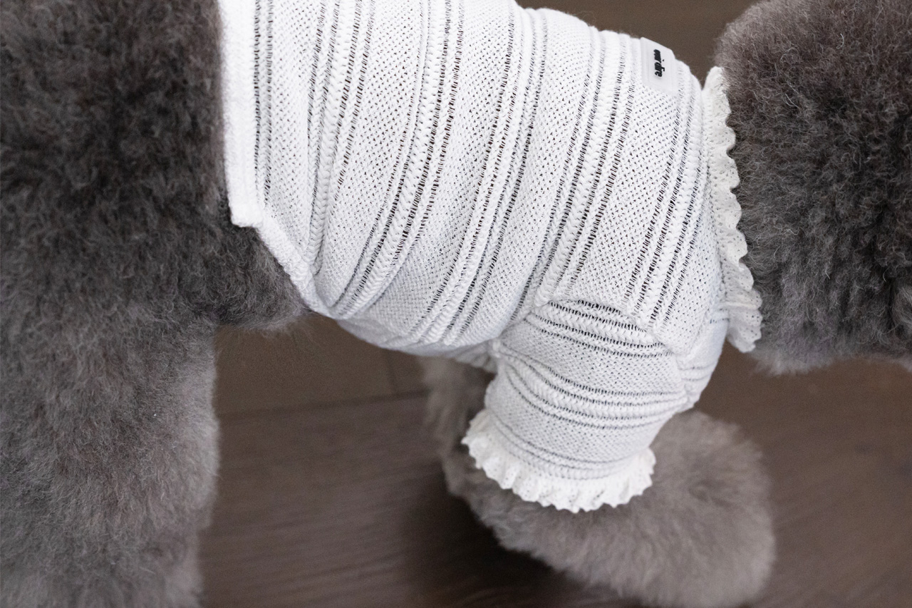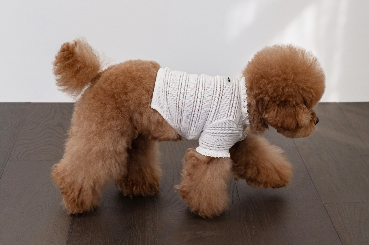 네크라인과 소매 끝에 더해진 프릴 레이스 디테일은 사랑스러움을 더하고 몸을 자연스럽게 감싸는 유연한 텐션과 움직임을 방해하지 않는 패턴 설계로 입은 듯, 입지 않은 듯 편안함을 전합니다.