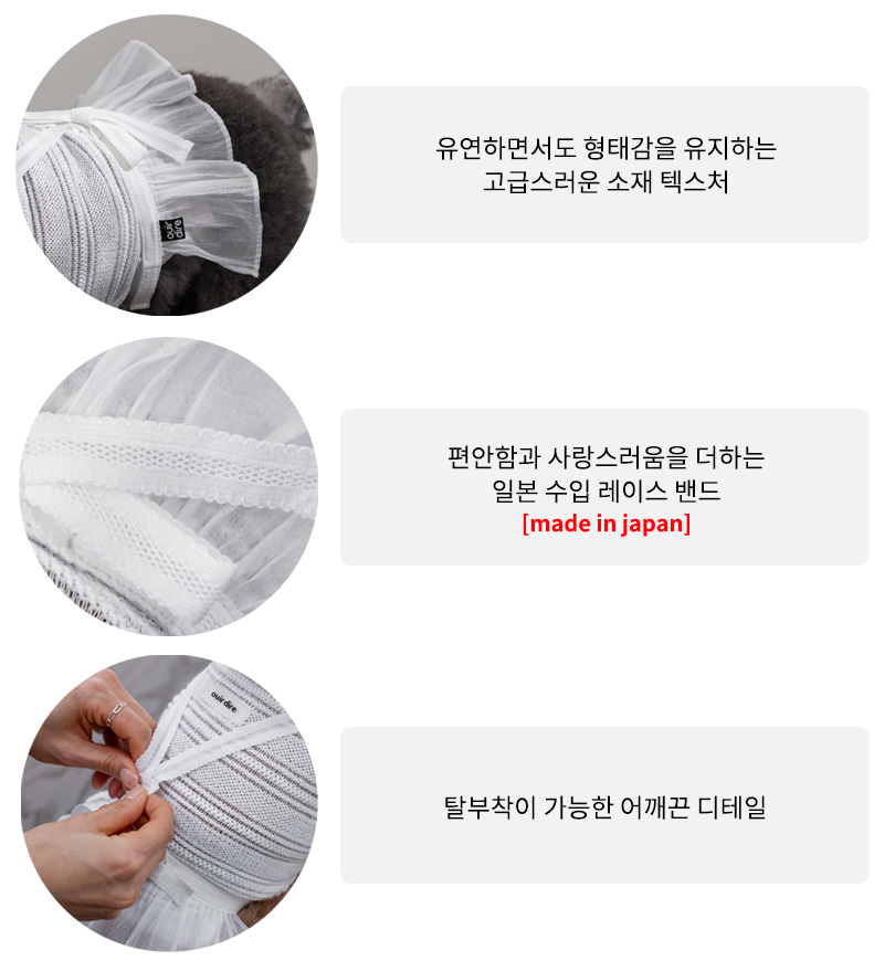 특히 허리 부분과 어깨끈이 편안한 밴딩 구조로 안정감 있게 감싸주어 자연스러운 사이즈 커버가 가능하고 탈부착이 가능한 어깨끈 디자인으로 다양한 스타일링이 가능하도록 완성 되었습니다.