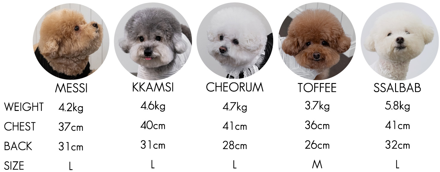 제품에 따라 1cm 내외의 오차가 있을 수 있으며, 견종에 따라 체형의 사이즈가 다를 수 있으므로 둘레 측정 후, 제품을 선택하여 주시기 바랍니다.