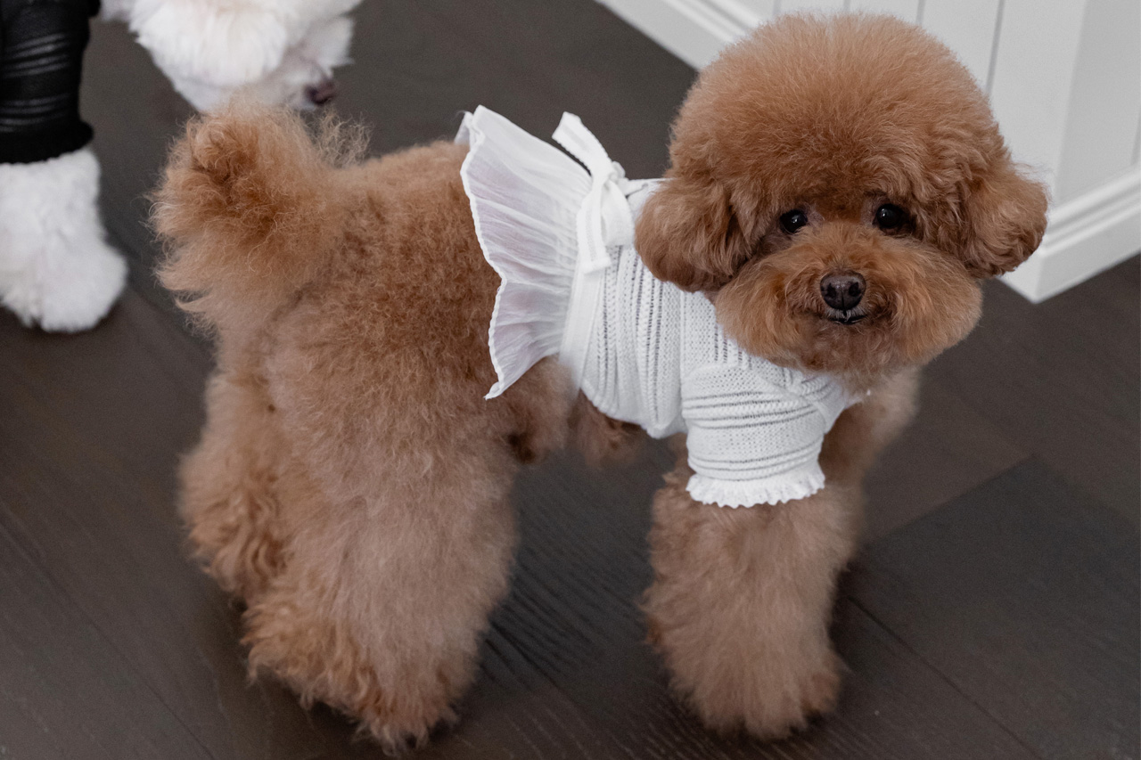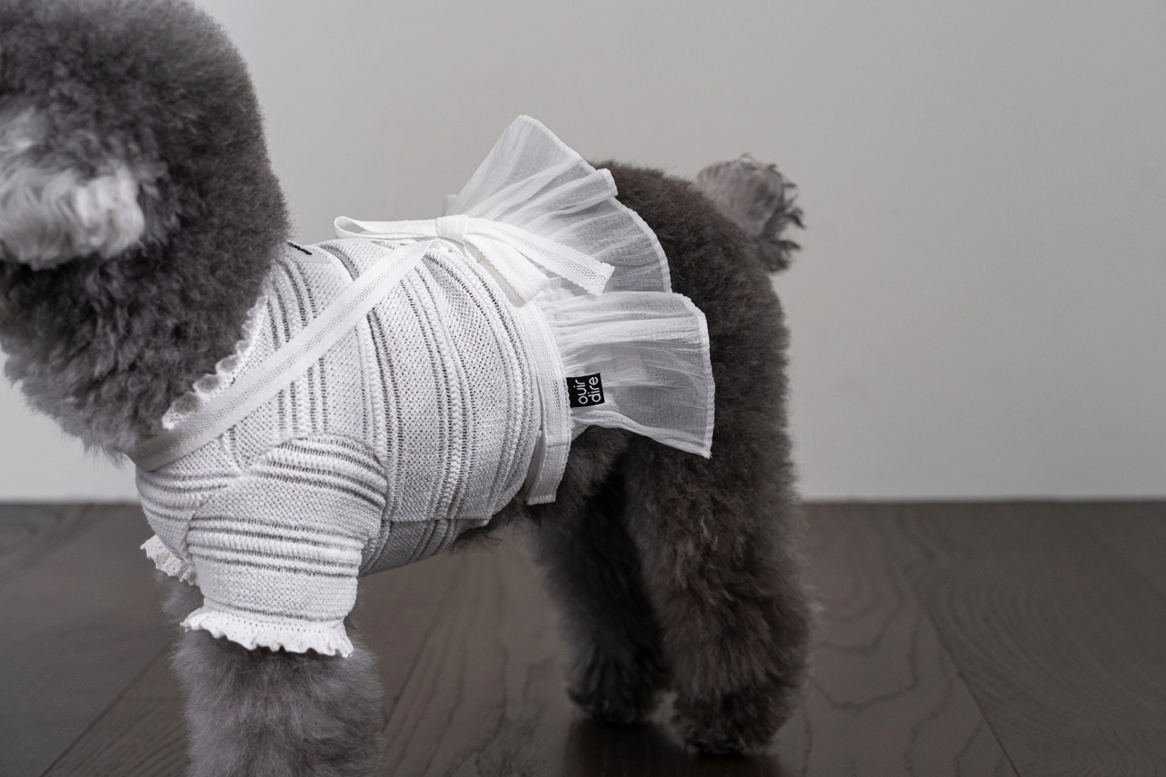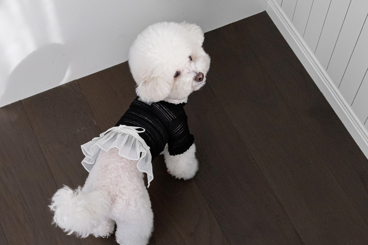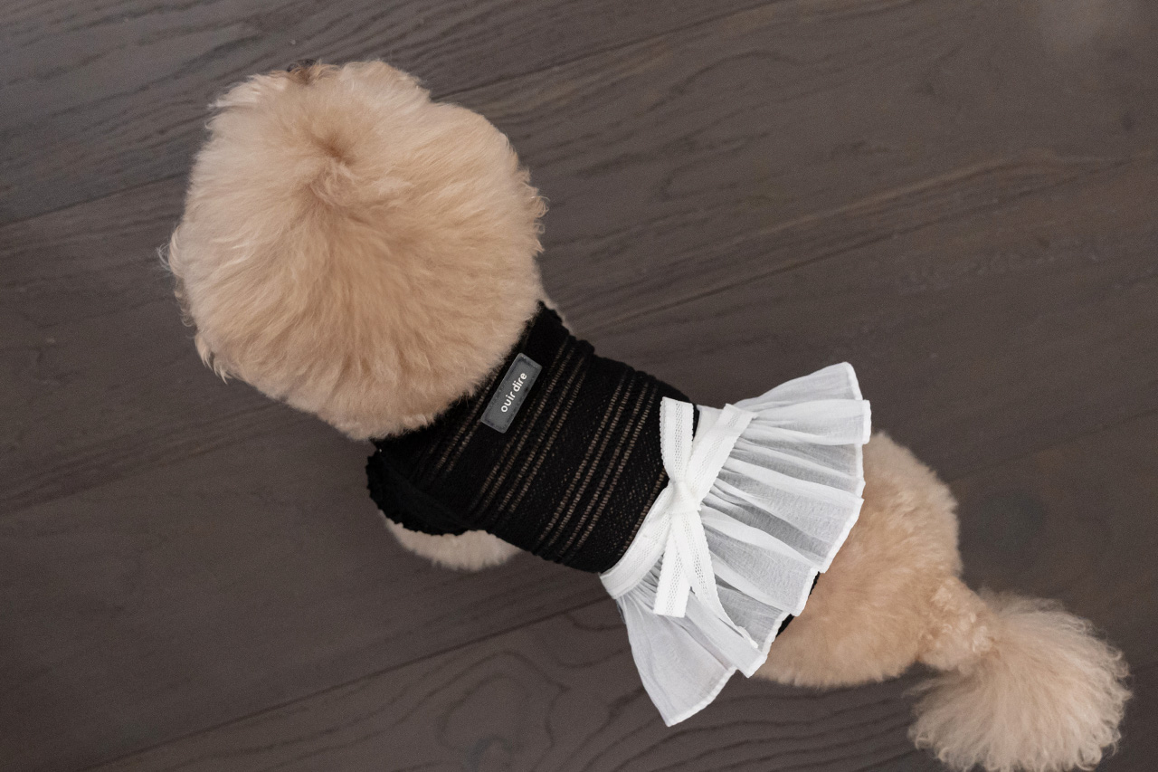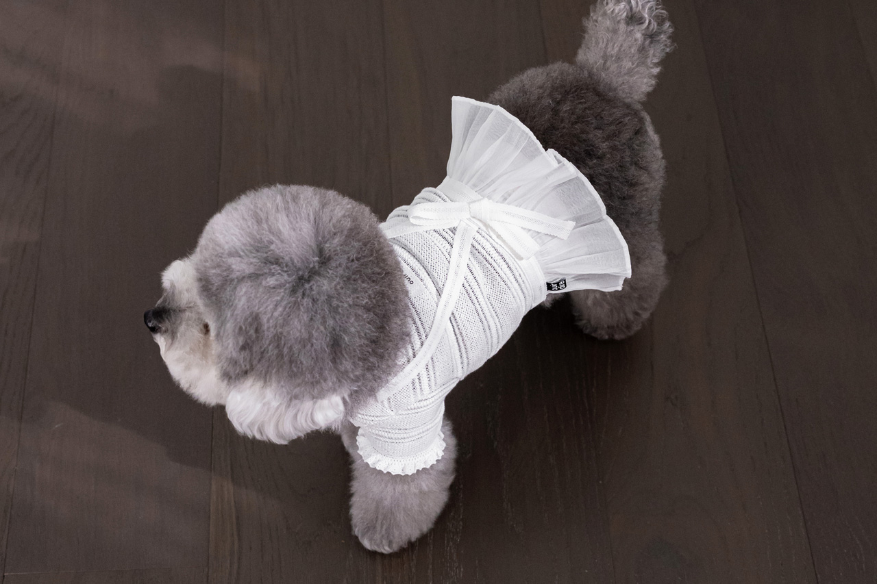 가볍게 퍼지는 프릴 디테일과 허리의 리본 장식은 사랑스러운 포인트가 되어 주고,