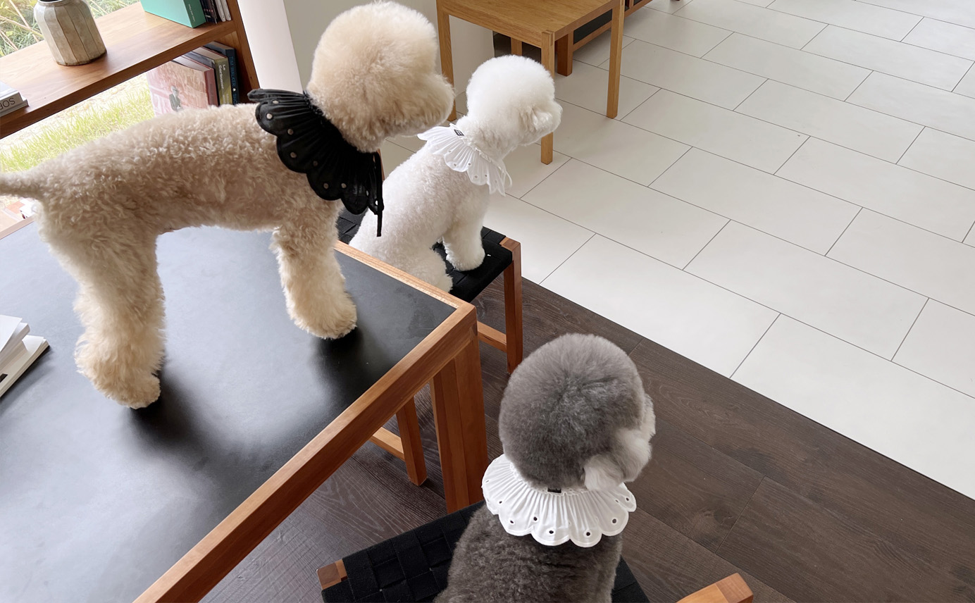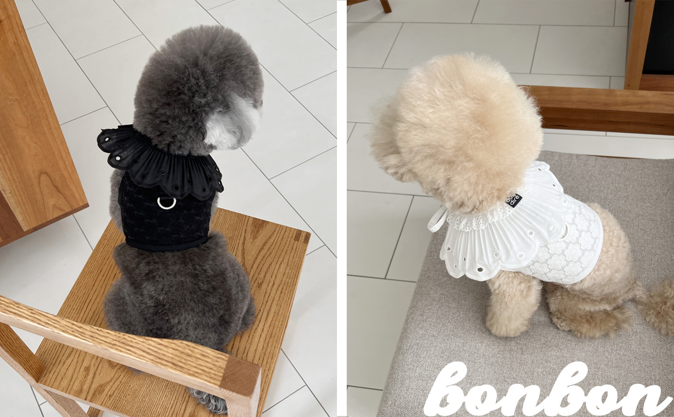 특히 봉봉 카라를 위아디어의 폼폼하네스. 달리아 하네스와 함께 코디하면 더욱더 드레스업 된 룩킹으로 연출 할 수 있어요!