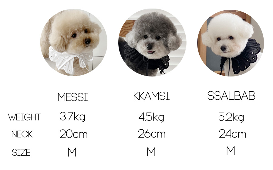 제품에 따라 1cm 내외의 오차가 있을 수 있으며, 견종에 따라 체형의 사이즈가 다를 수 있으므로 둘레 측정 후, 제품을 선택하여 주시기 바랍니다.
