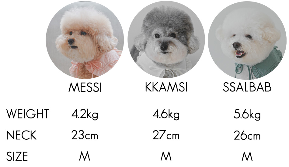 제품에 따라 1cm 내외의 오차가 있을 수 있으며, 견종에 따라 체형의 사이즈가 다를 수 있으므로 둘레 측정 후, 제품을 선택하여 주시기 바랍니다.