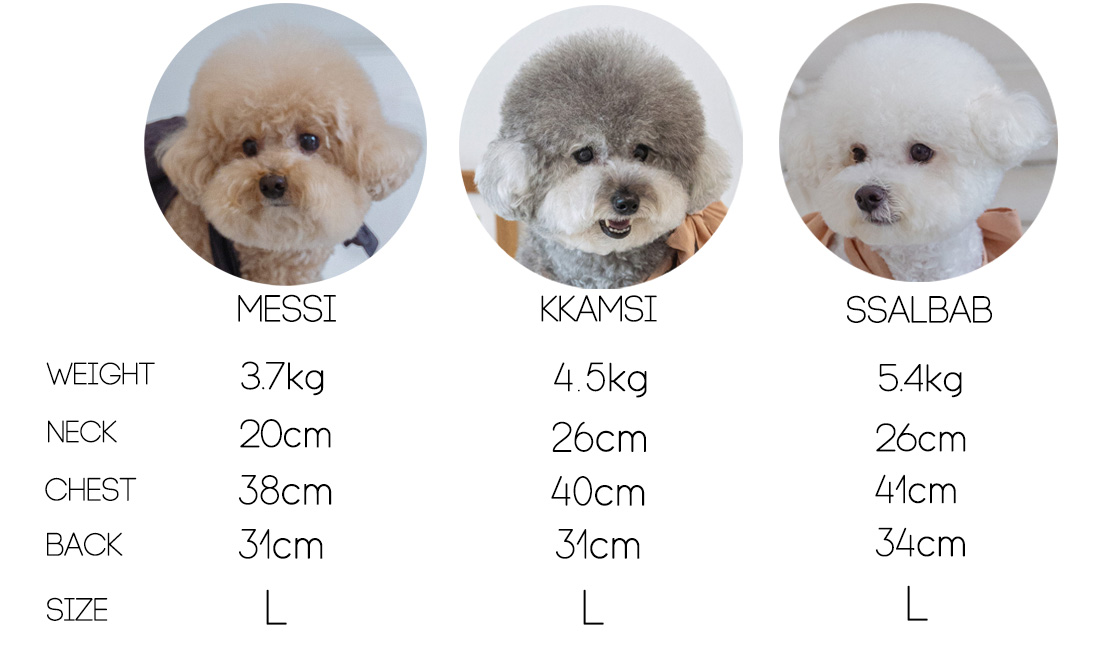 제품에 따라 1cm 내외의 오차가 있을 수 있으며, 견종에 따라 체형의 사이즈가 다를 수 있으므로 둘레 측정 후, 제품을 선택하여 주시기 바랍니다.