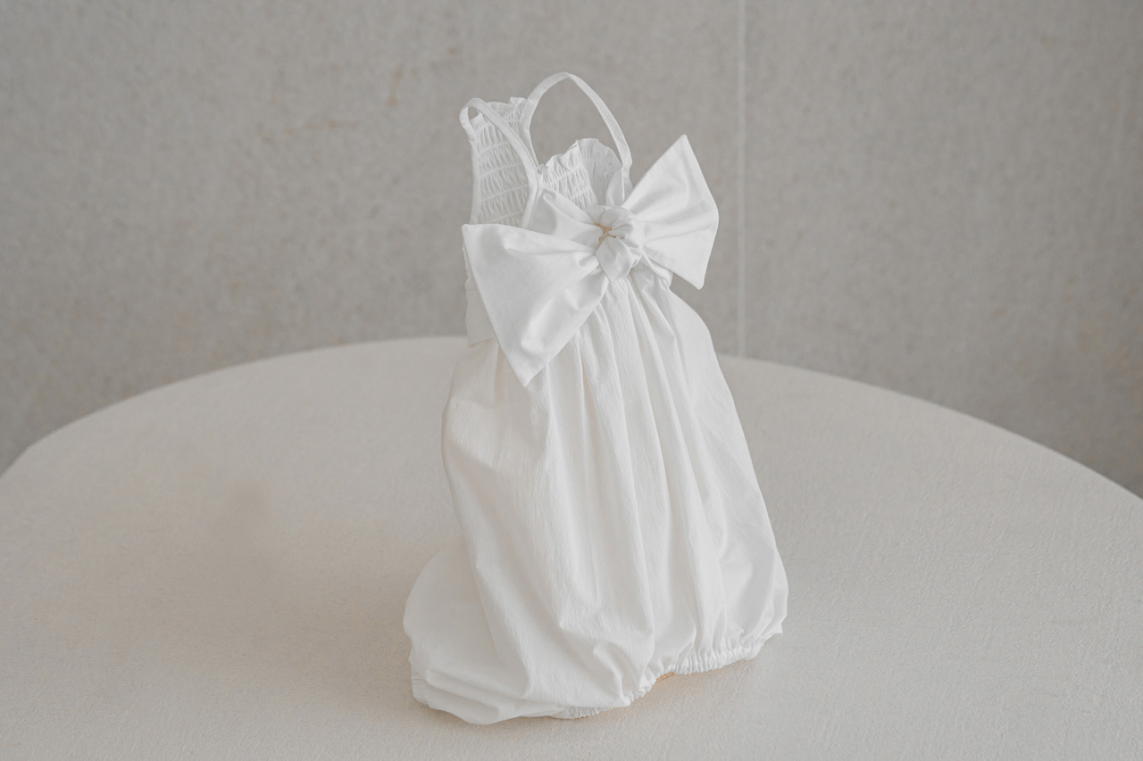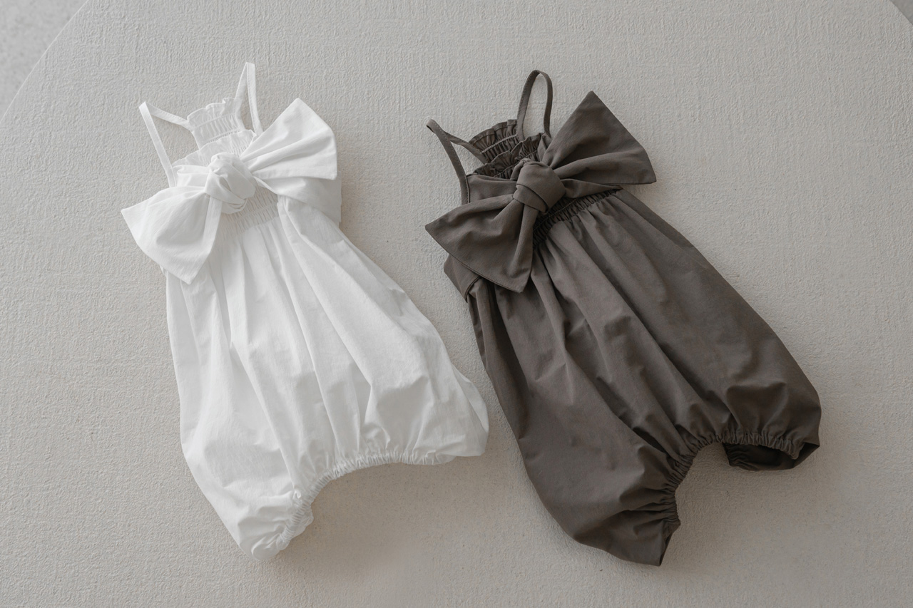 커다란 리본과 입체적인 실루엣이 돋보이는 디어 롬퍼는