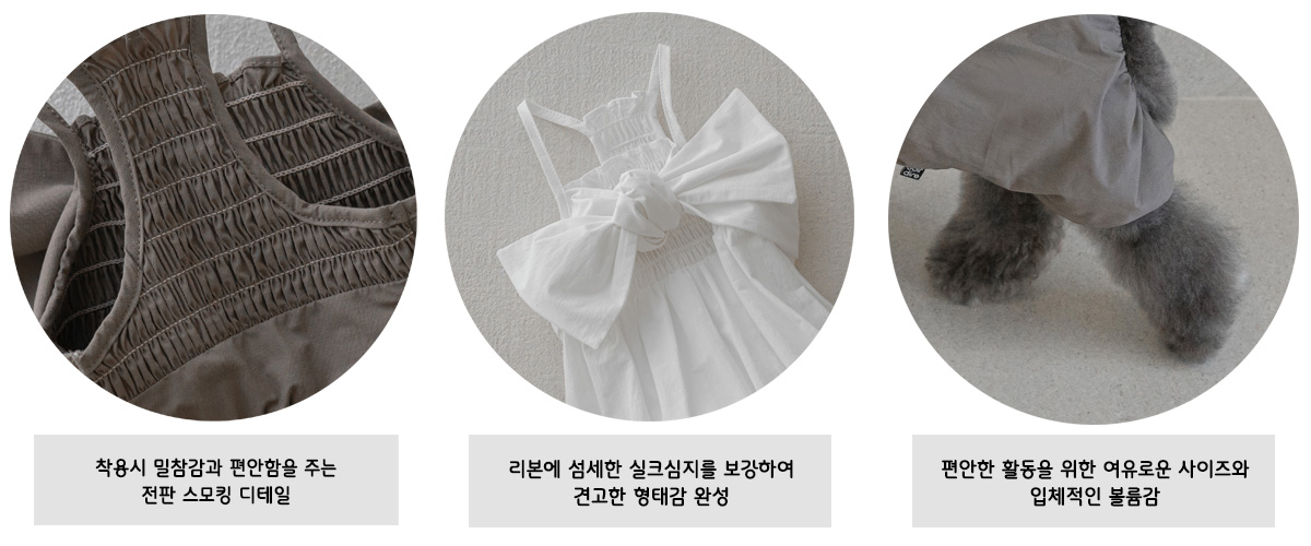 상의의 전판 스모킹으로 편안한 피팅감을 선사하고 형태감있는 리본 디테일로 한번 더 잡아주어 더욱 완벽한 핏감을 뽐낼 수 있죠!