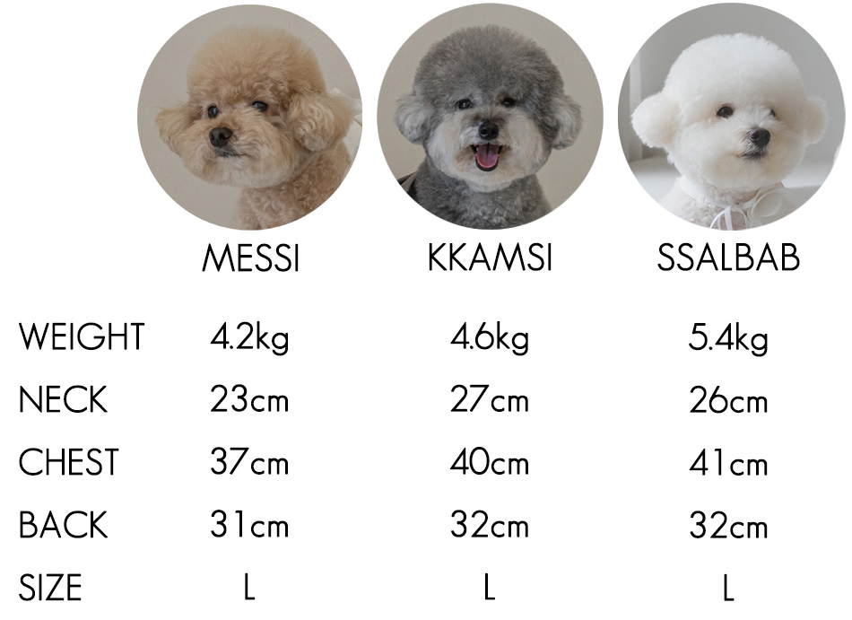 제품에 따라 1.cm 내외의 오차가 있을 수 있으며, 견종에 따라 체형의 사이즈가 다를 수 있으므로 둘레 측정 후, 제품을 선택하여 주시기 바랍니다.