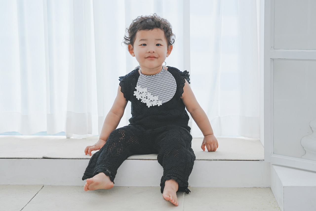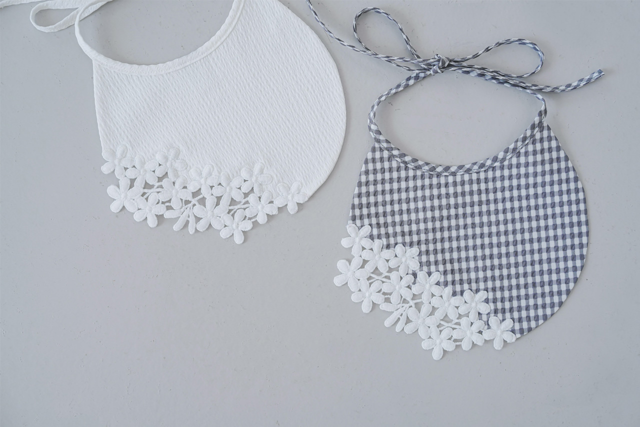 계절에 구애 받지 않고 가볍게 착용할 수 있는 빕 형태로 입체감이 느껴지는 도톰한 플라워 레이스가 돋보이는 데이지 빕은