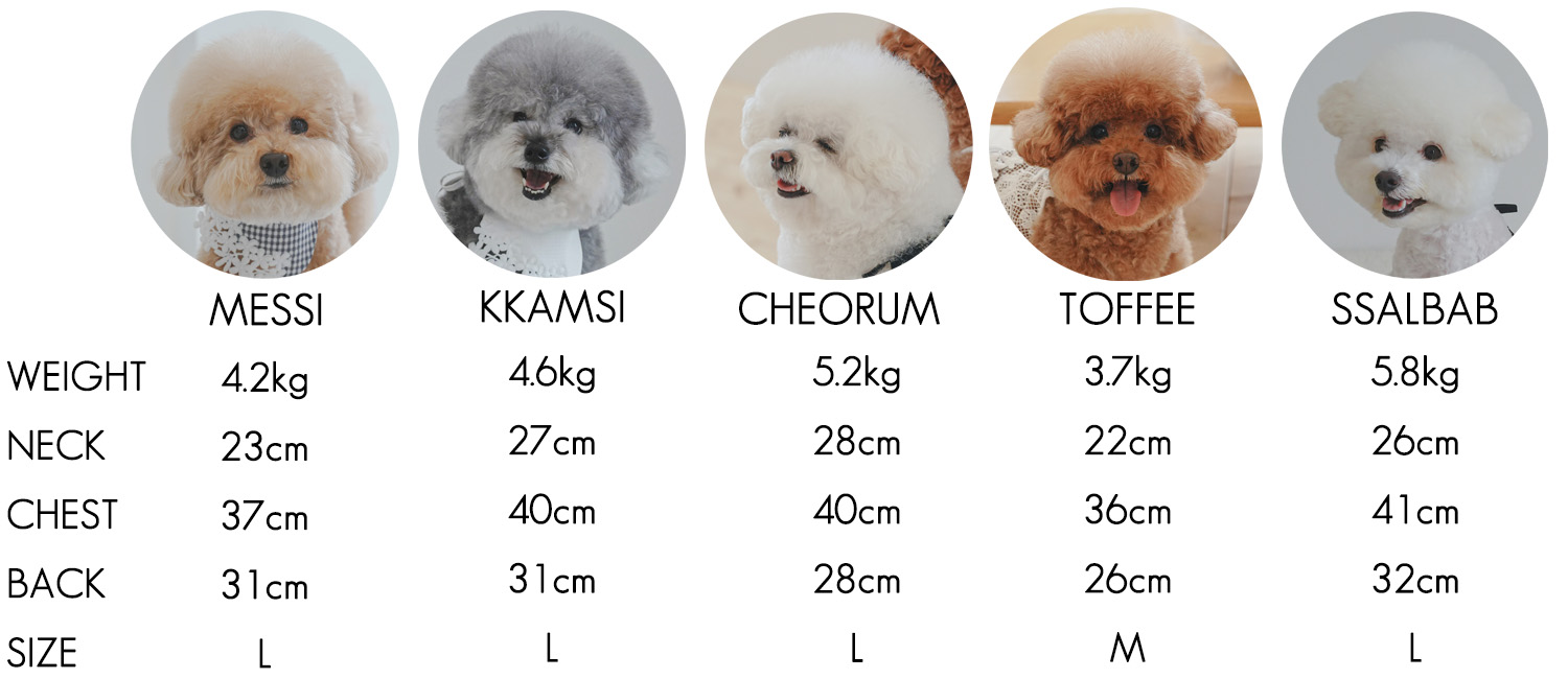제품에 따라 1.cm 내외의 오차가 있을 수 있으며, 견종에 따라 체형의 사이즈가 다를 수 있으므로 둘레 측정 후, 제품을 선택하여 주시기 바랍니다.